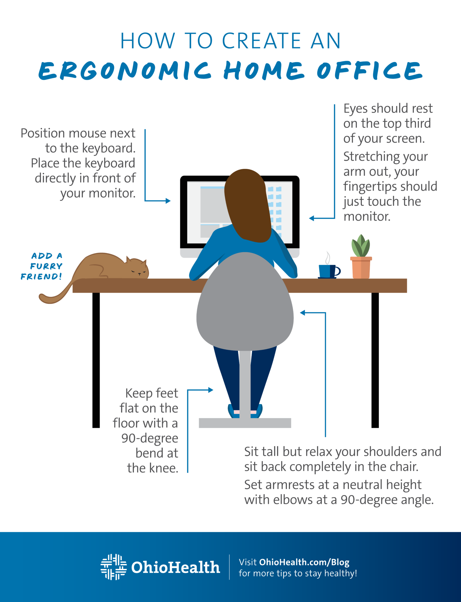 Consider the height and position of your chair, desk, and monitor. A good rule of thumb is to position your monitor directly in front of you, about an arm's length away, and at a height that allows you to gaze slightly downward. Your keyboard and mouse should be close to your body, allowing you to work with your wrists in a neutral position. Incorporating ergonomic accessories into your home office can also make a significant difference.